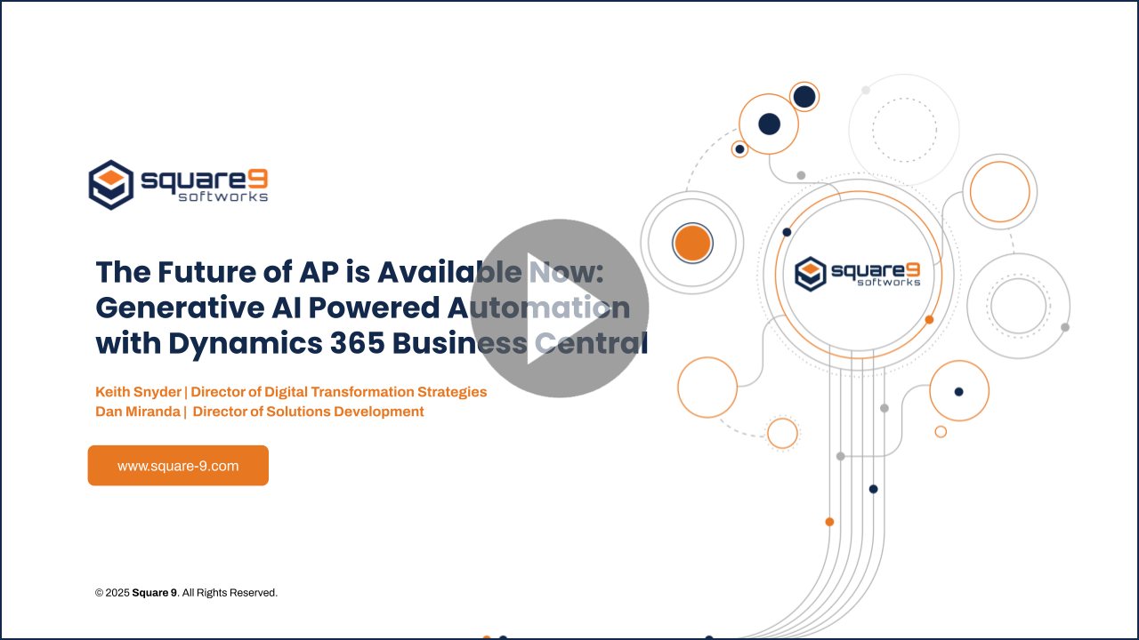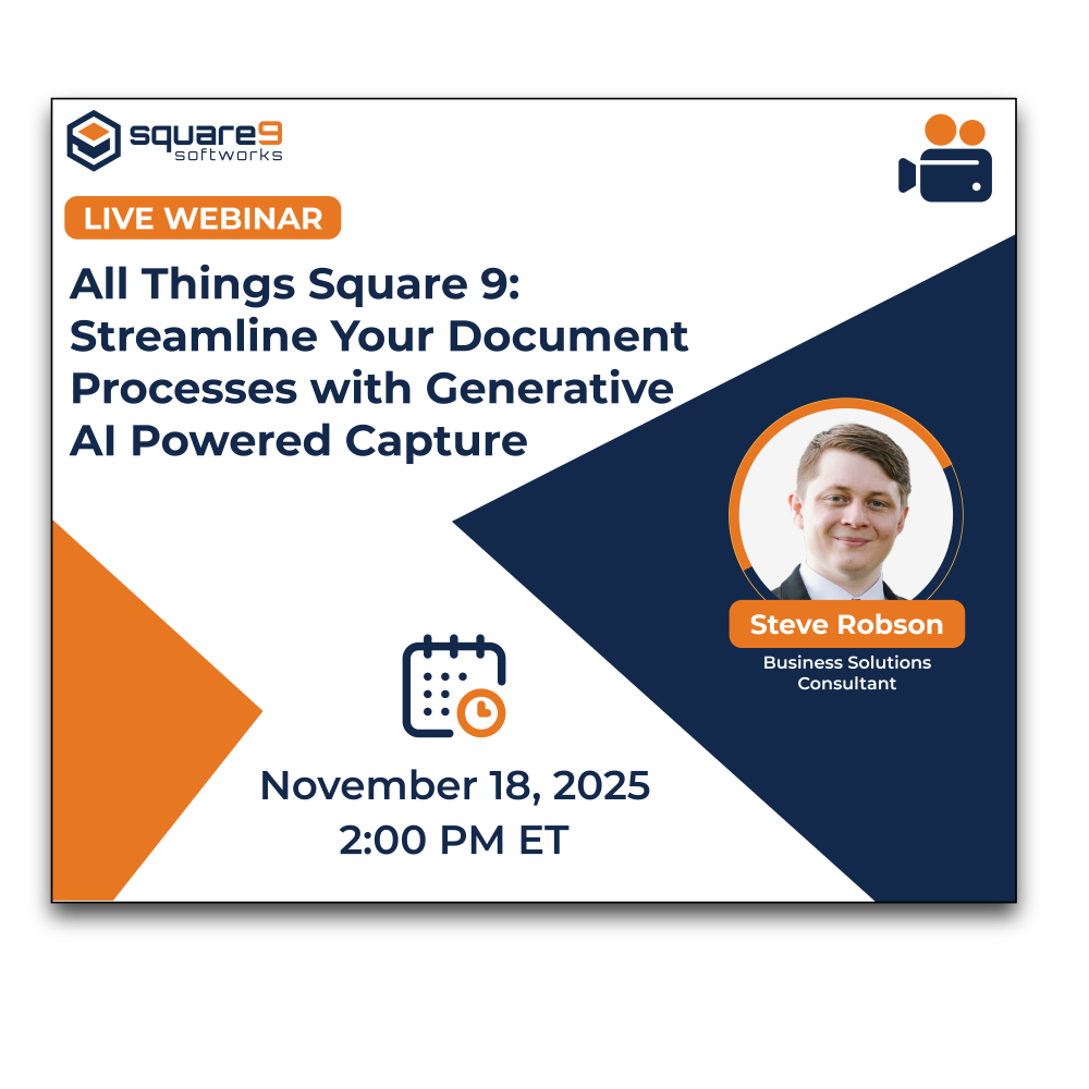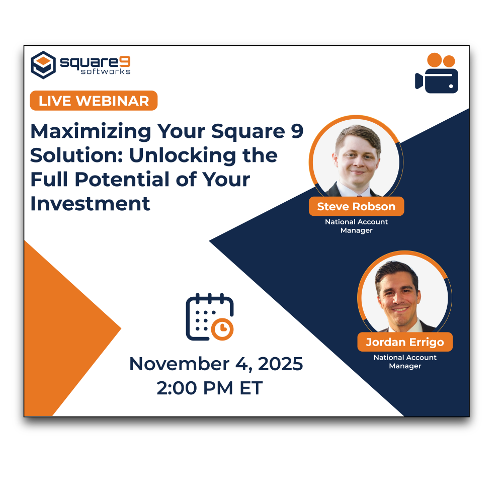 Watch this 30-minute webinar exploring how Square 9’s intelligent information management solutions can help your organization digitize operations, streamline workflows, and work smarter across every department.
